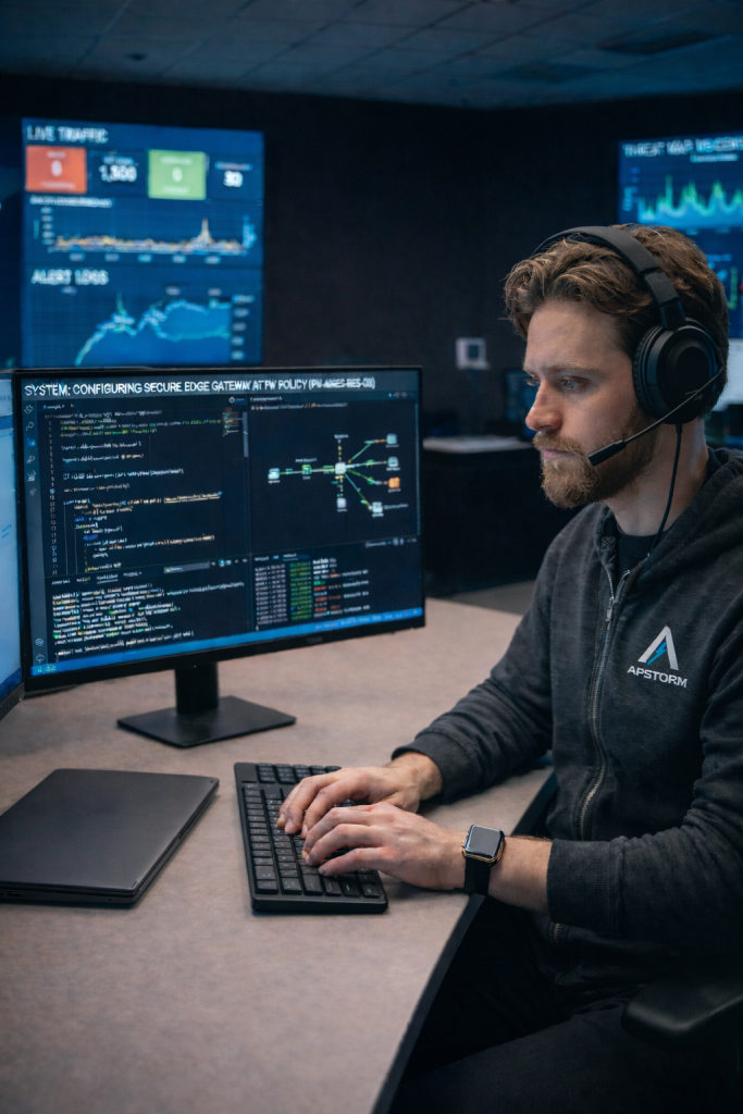 Apstorm provides practical cybersecurity consultancy and implementation services that help organisations design, deploy and operate effective security controls. Our approach focuses on delivering measurable improvements to security posture while ensuring solutions integrate smoothly with existing infrastructure and operational processes.